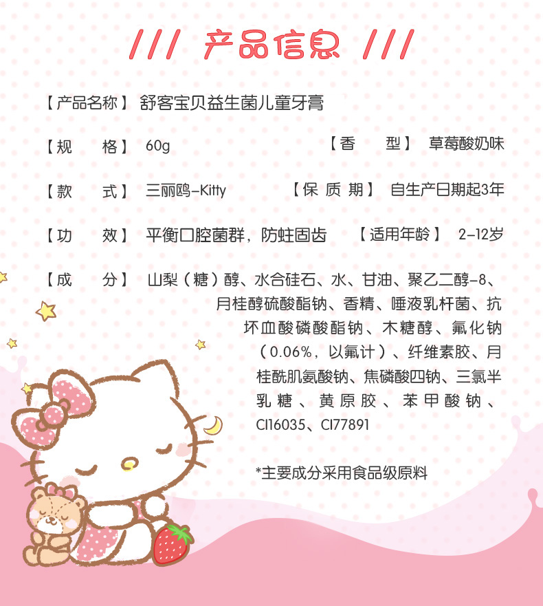 商品名称:舒客宝贝益生菌儿童牙膏(草莓酸奶味)