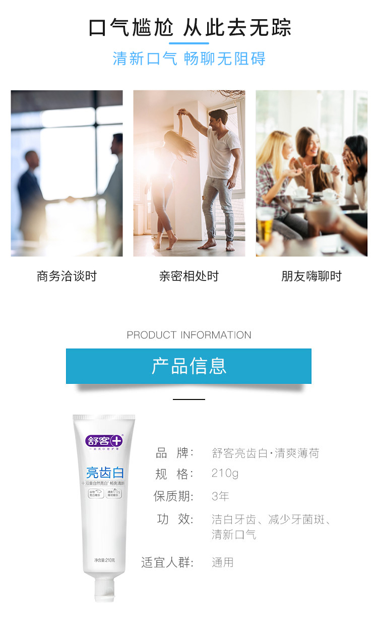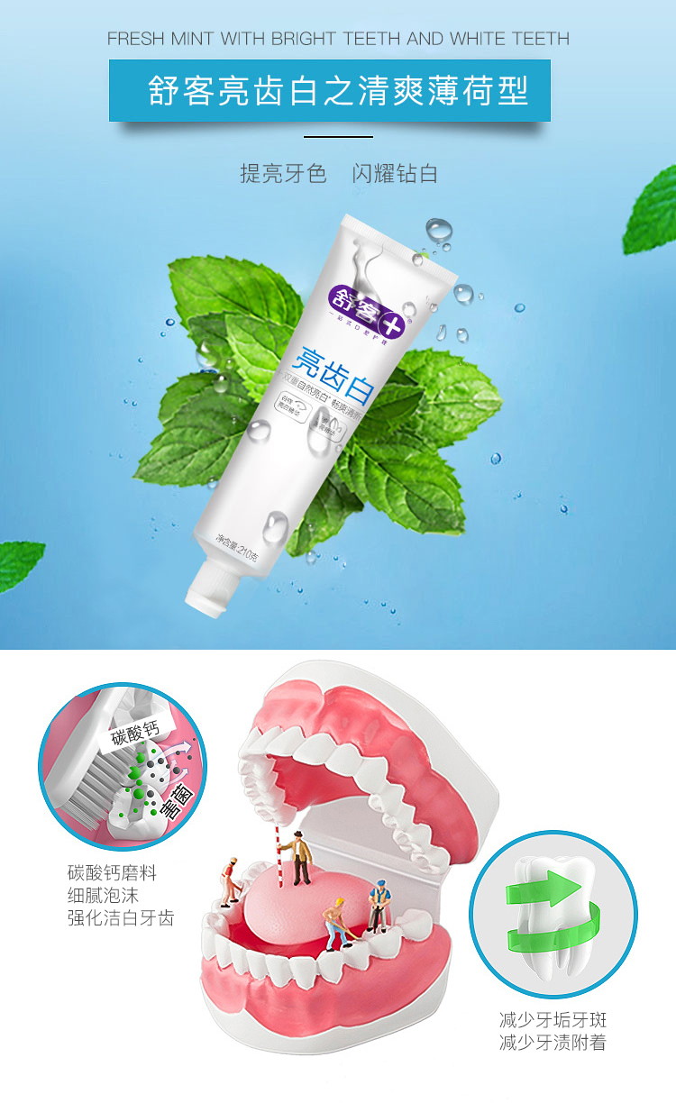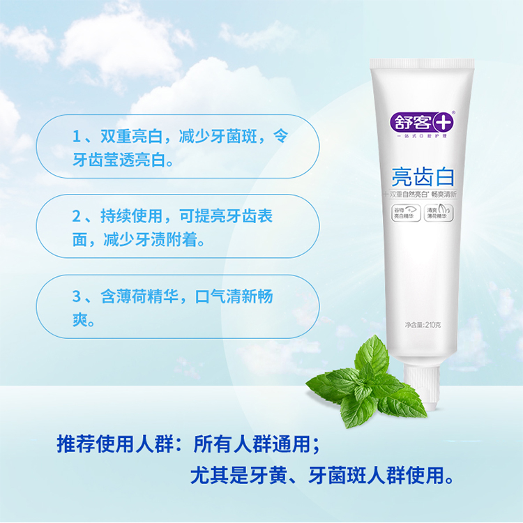 商品名称:舒客亮齿白牙膏(清爽薄荷)210g 加量不加价
