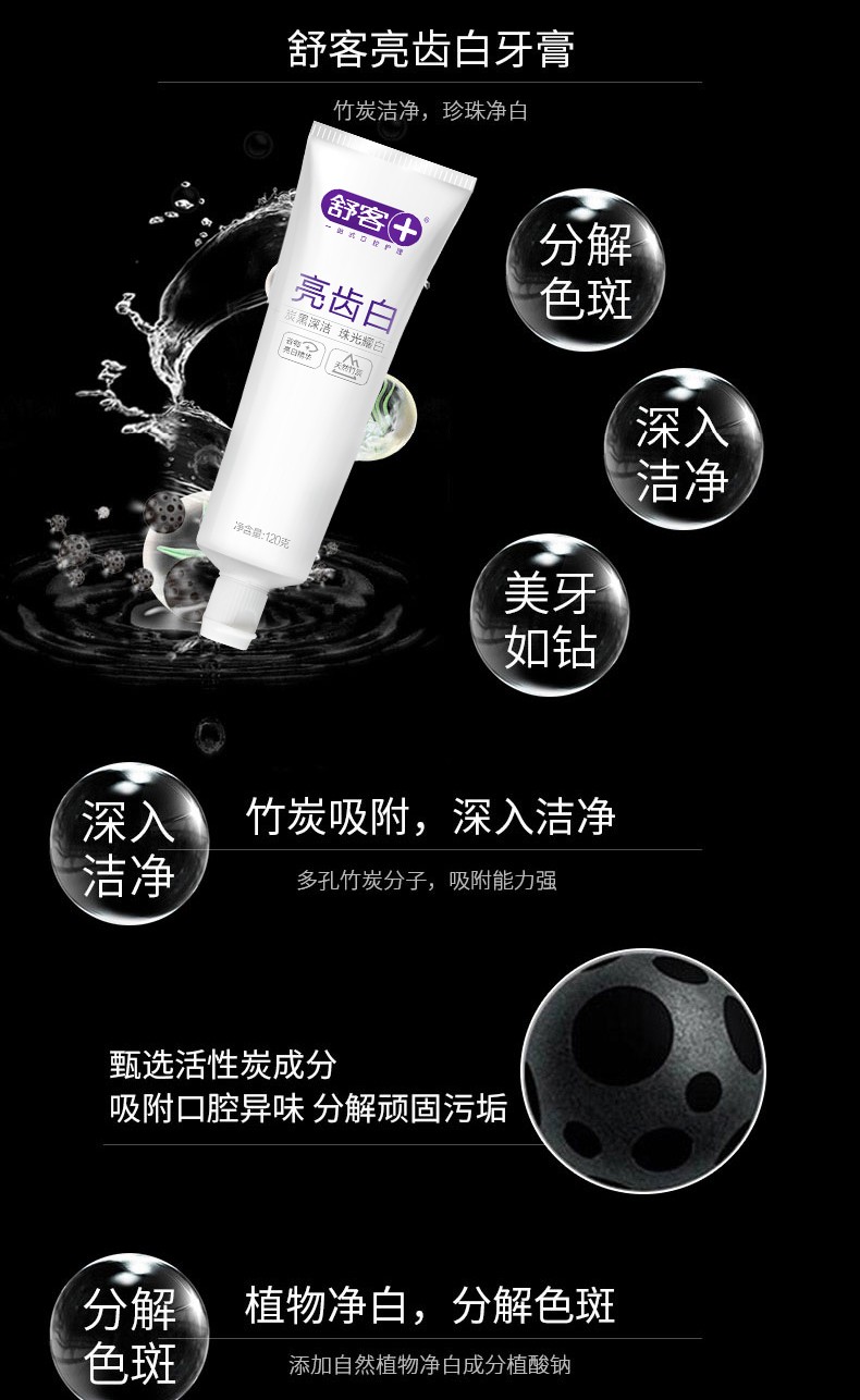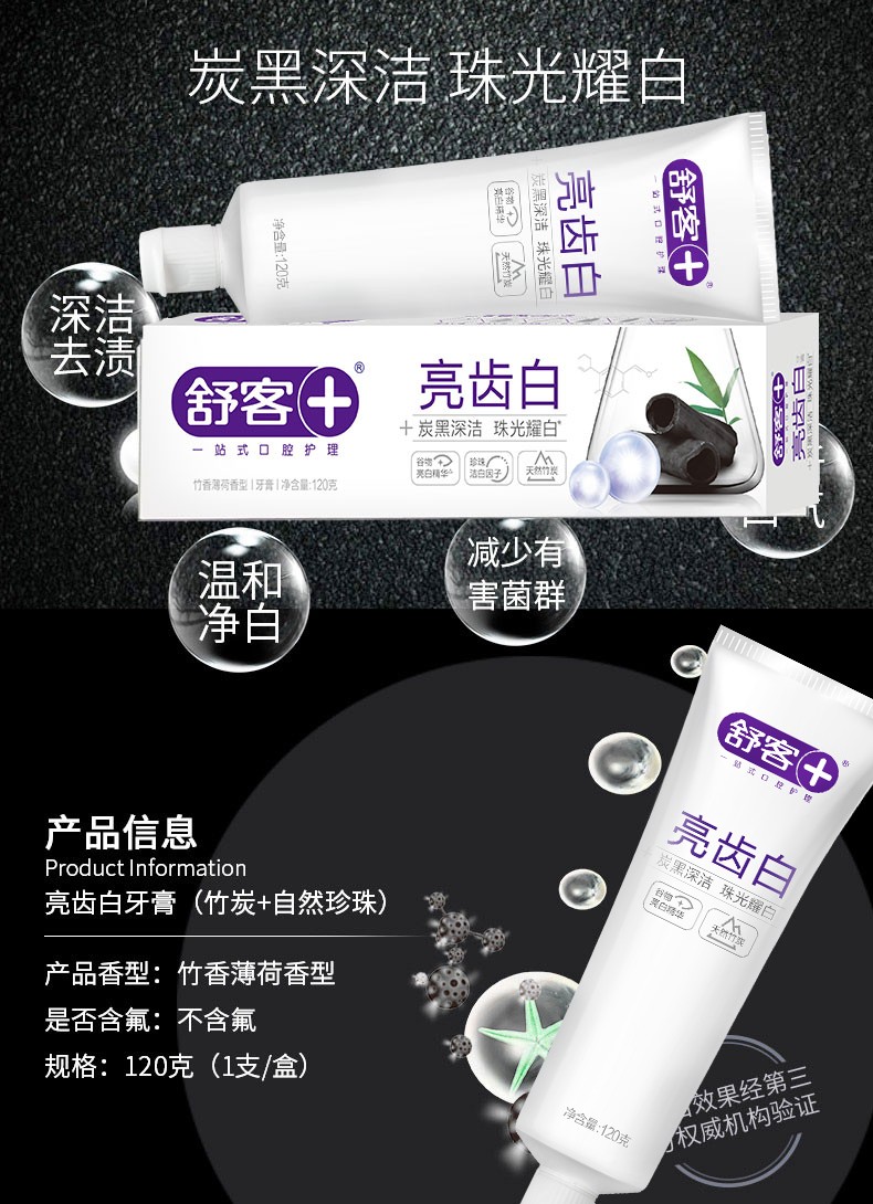 商品名称:舒客亮齿白牙膏(竹炭+天然珍珠)210g 加量不加价