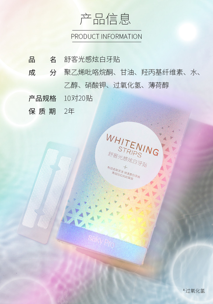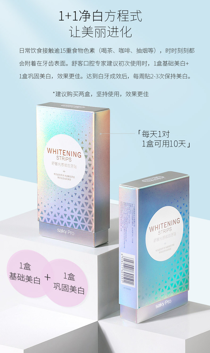商品名称:舒客净白牙贴高效净白去黄牙贴光感炫白牙贴 10对/盒装