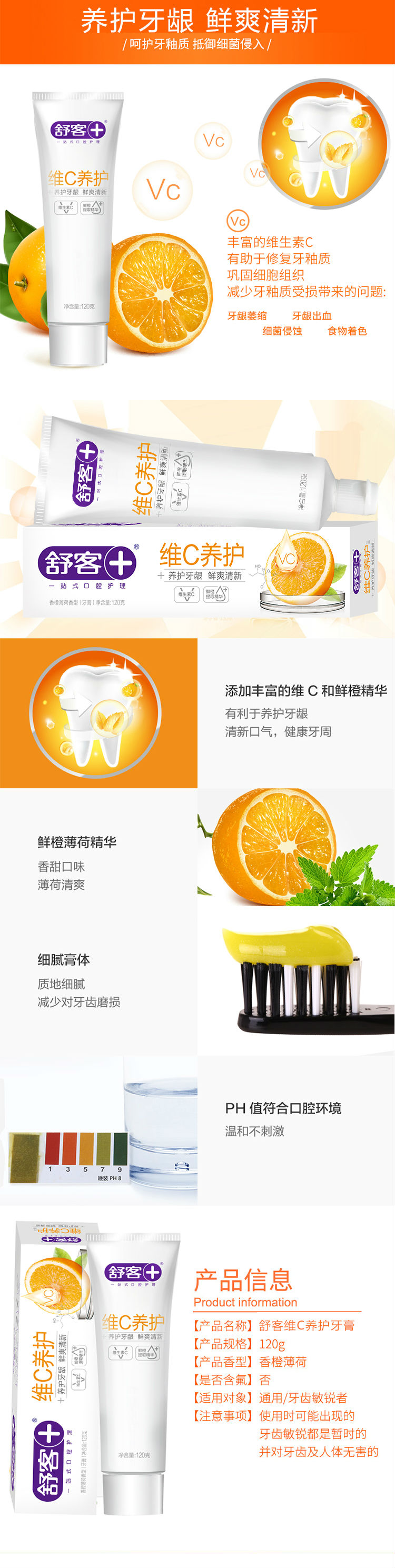 商品名称:舒客维C营养牙膏120g*3支