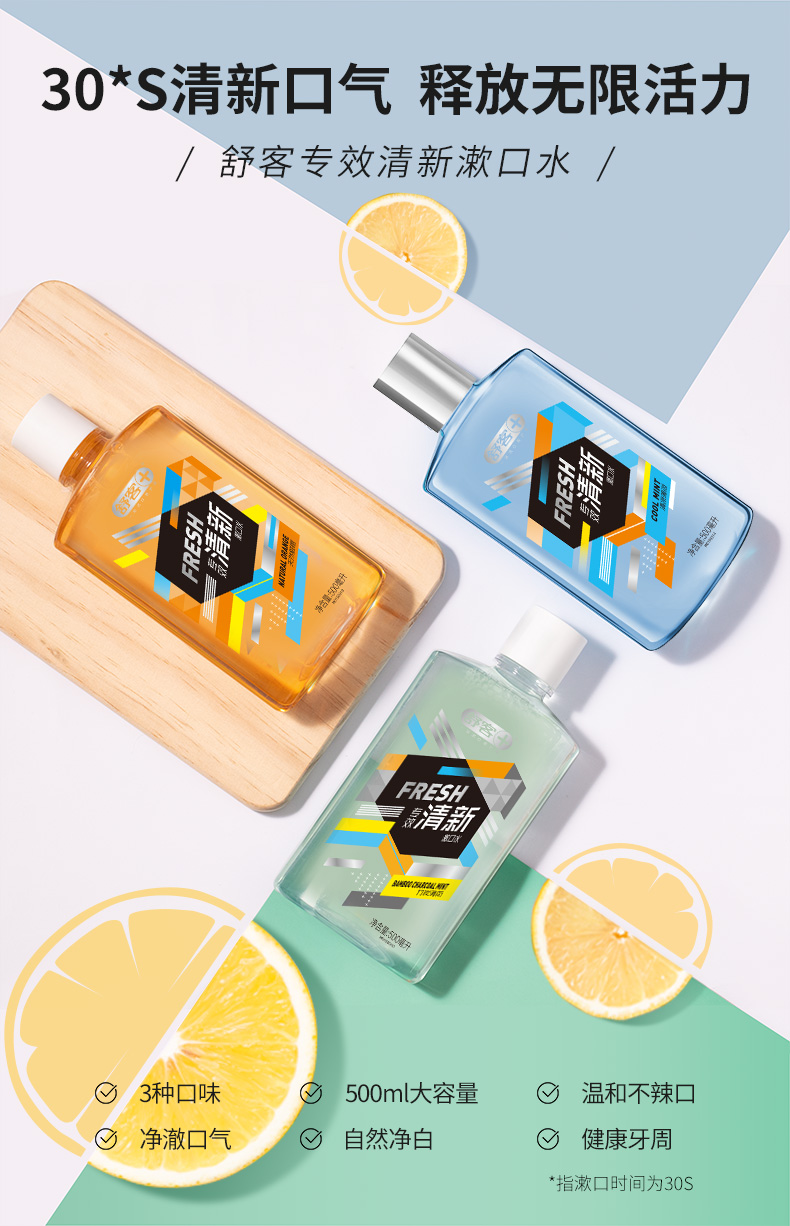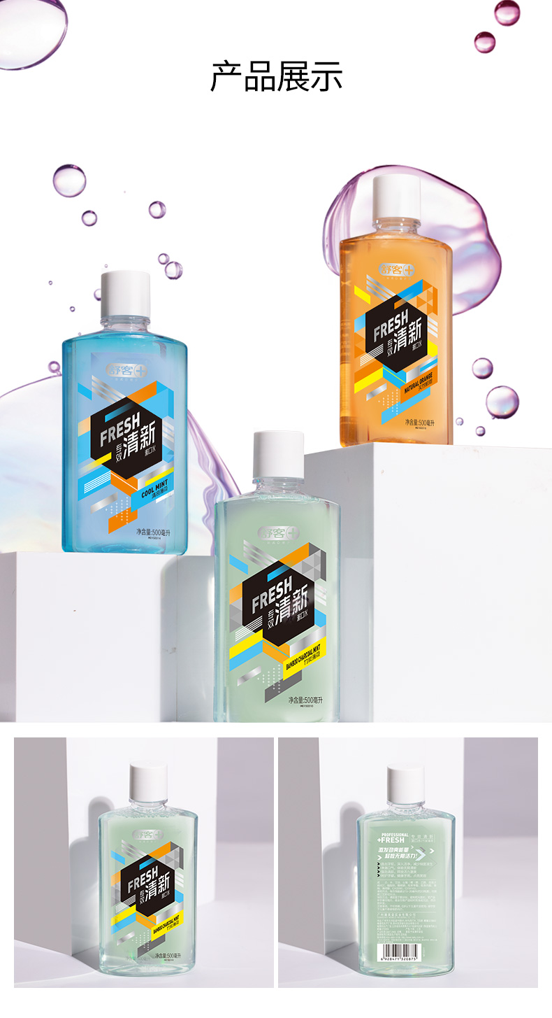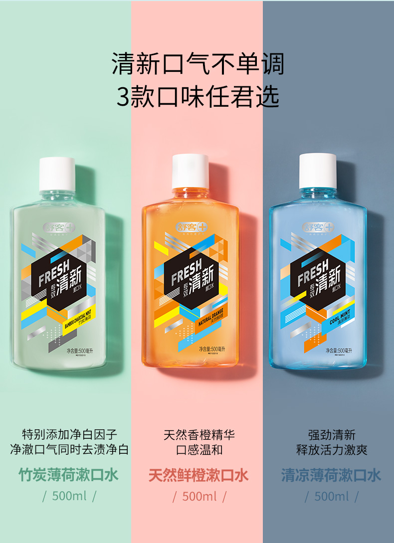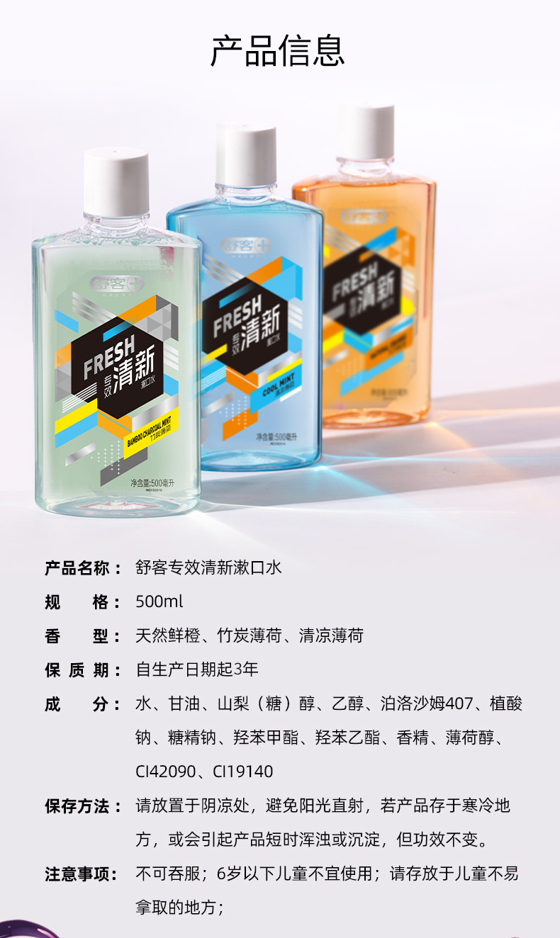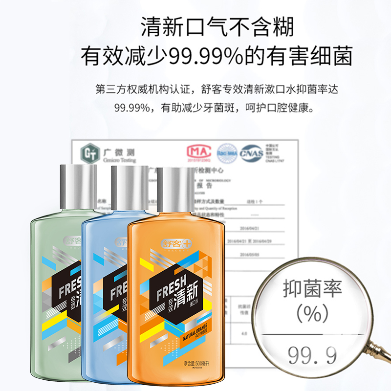 商品名称:舒客专效清新漱口水500ml(3种口味可选)