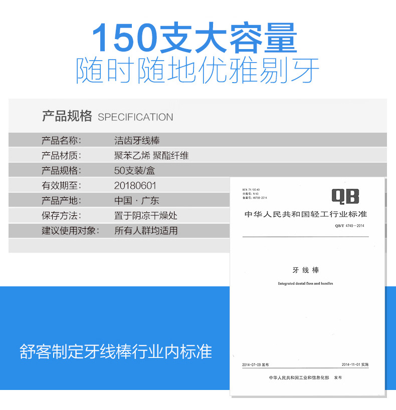 商品名称:舒客专业洁齿牙线棒
