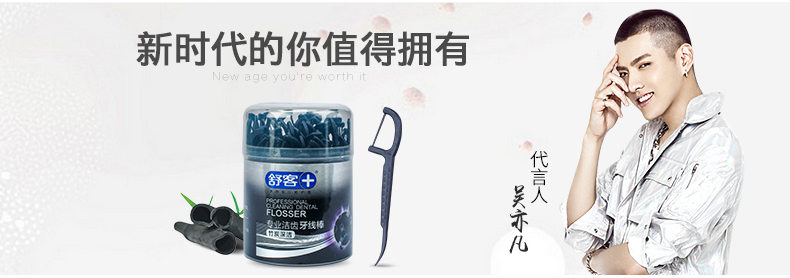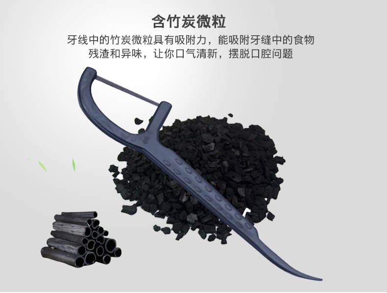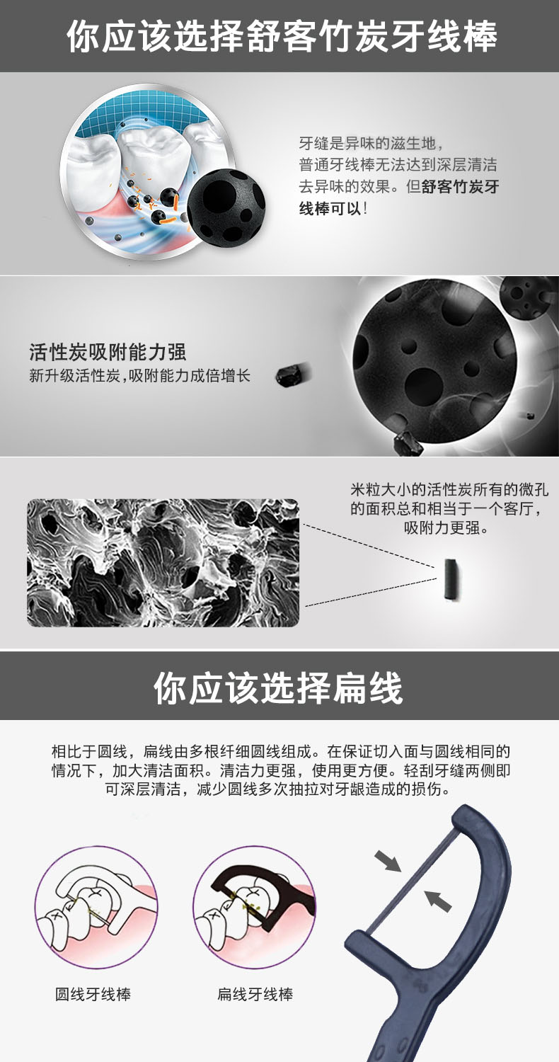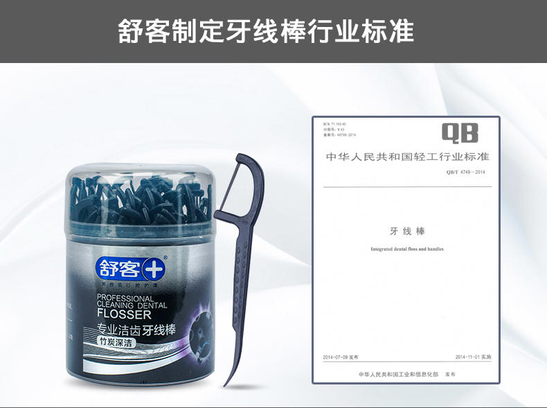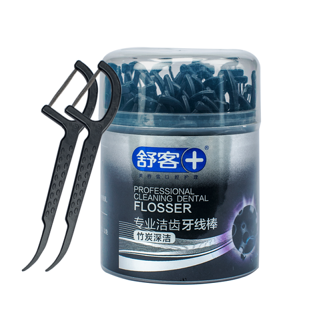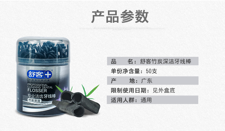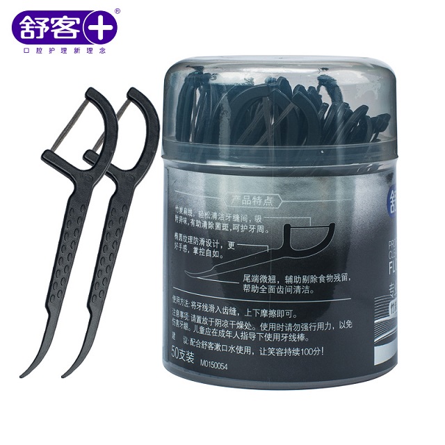 商品名称:舒客 专效洁齿牙线棒(竹炭深洁)50支/盒*2