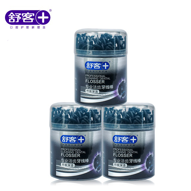 舒客 专效洁齿牙线棒(竹炭深洁)50支/盒*2